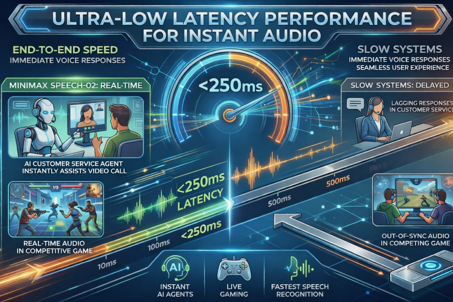 MiniMax Speech-02 excels in speed, achieving end-to-end latency under 250 milliseconds This ultra-fast performance makes it one of the few high-quality models suitable for real-time applications like AI customer service agents and live gaming interactions.