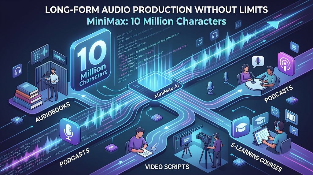 Produce consistent, studio-quality narration across long-form scripts without voice fatigue or retakes. MiniMax maintains stable tone and pacing across millions of characters — ideal for serialized podcasts and full-length audiobooks.