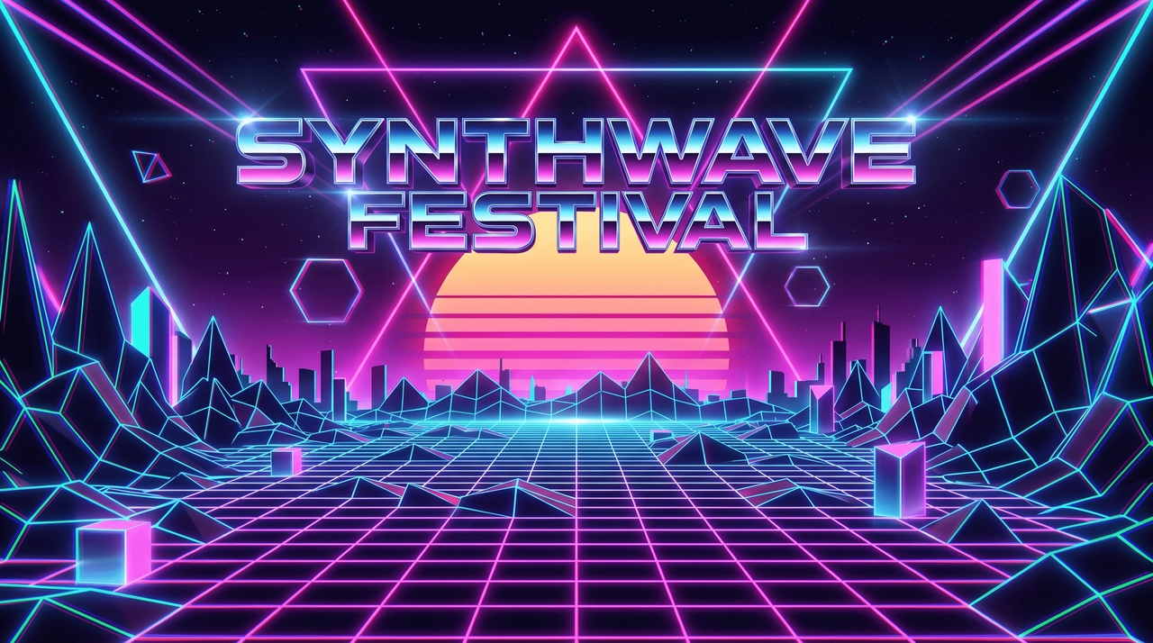 Craft compelling marketing materials, engaging social media posts, and striking digital illustrations that capture audience attention instantly. Prompt: "A vibrant, futuristic synthwave poster for a music festival, featuring neon colors, geometric shapes, and a glowing grid landscape, 8k resolution."