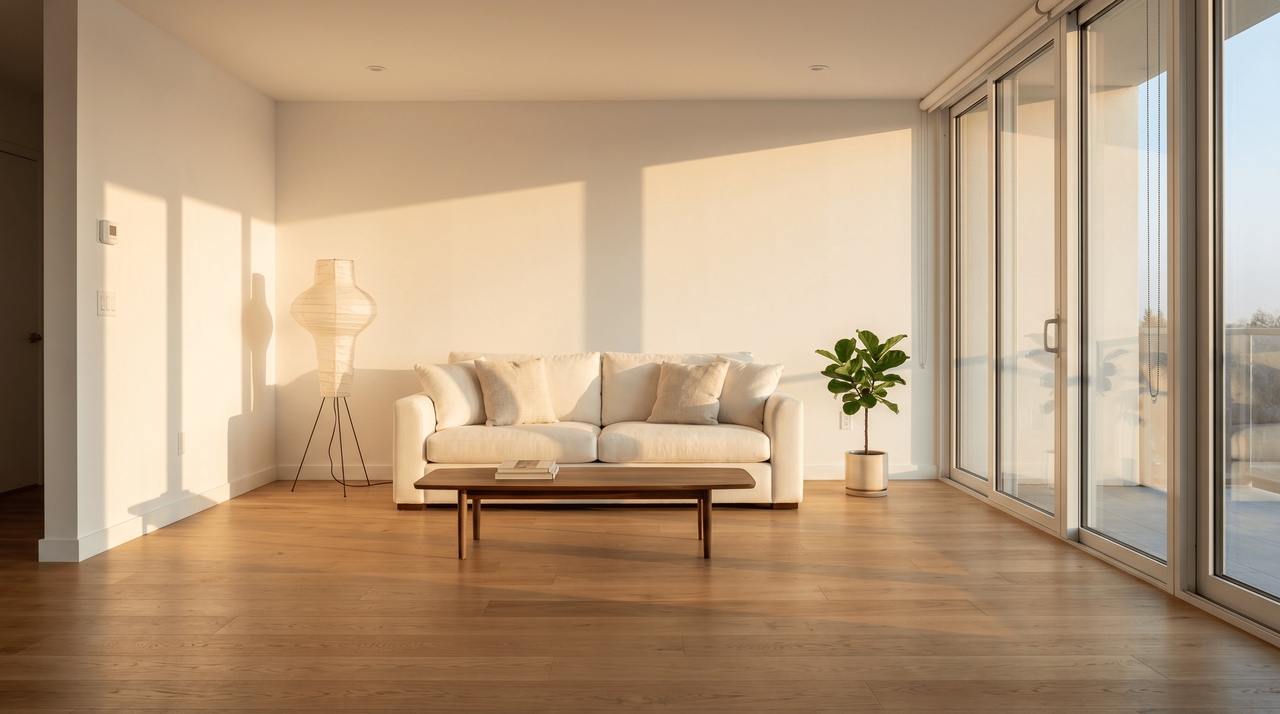Visualize breathtaking indoor spaces with realistic lighting, textures, and furniture arrangements tailored to specific aesthetic preferences. Prompt: "A modern minimalist living room featuring a plush cream sofa, warm oak wood flooring, floor-to-ceiling windows, and natural sunlight, photorealistic."