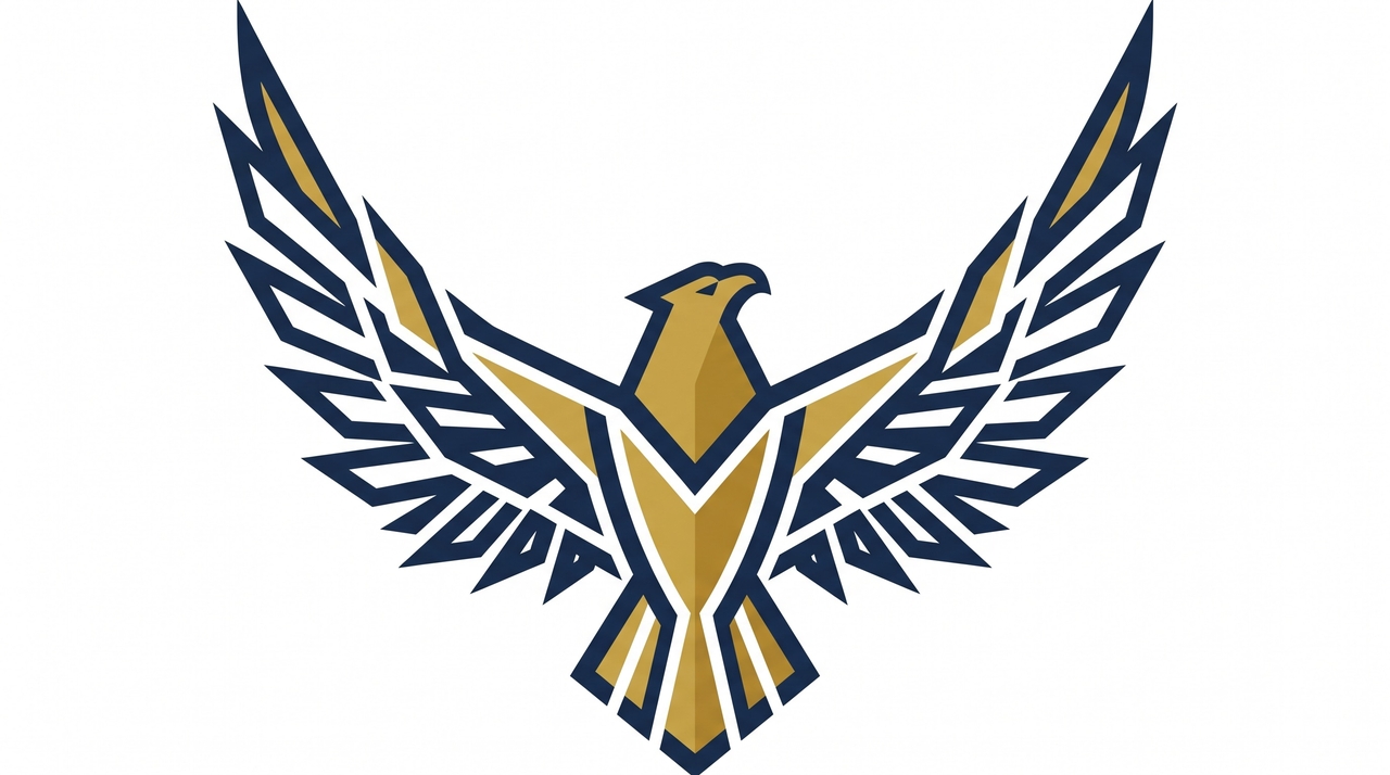 Develop memorable brand identities with unique vectors, symbols, and typographic layouts that perfectly encapsulate a company's core mission. Prompt: "A minimal, flat vector logo of a stylized soaring eagle, using negative space, geometric lines, dark blue and gold color palette, white background."