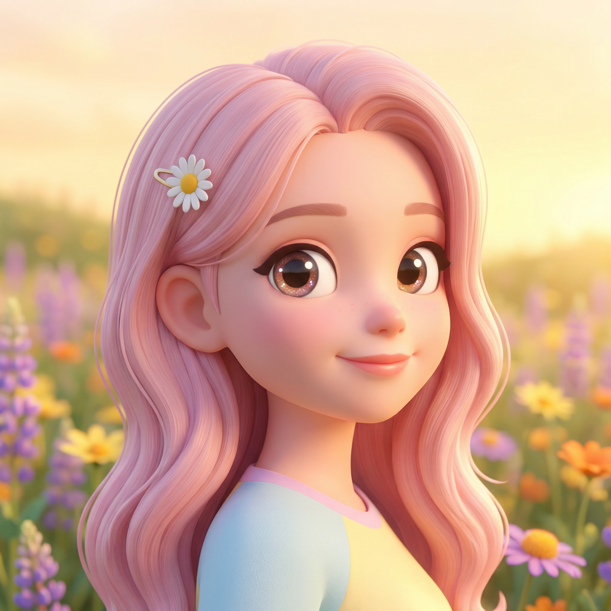 With Framia Pro's Instagram profile picture maker, feel free to showcase your unique style and personality through special visual customization and outfits with Framia Pro. Prompt: Create a girly, cartoon-style profile photo with soft lighting and an outdoor background.