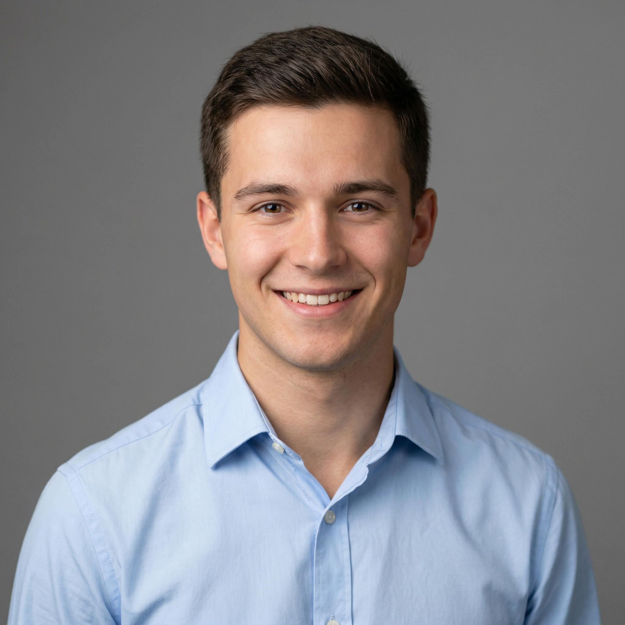 Conveys trust and confidence with Framia Pro's LinkedIn profile picture maker, making a good first impression and increasing employment opportunities. Prompt: Turn this selfie into a 1:1 LinkedIn profile picture with a formal T-shirt and a light grey background.