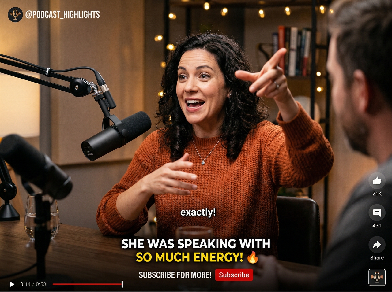 Pick engaging moments from audio or video podcasts and convert them into short clips using our YouTube Shorts maker. These highlights showcase key discussions and give new viewers a quick reason to explore the full episode.